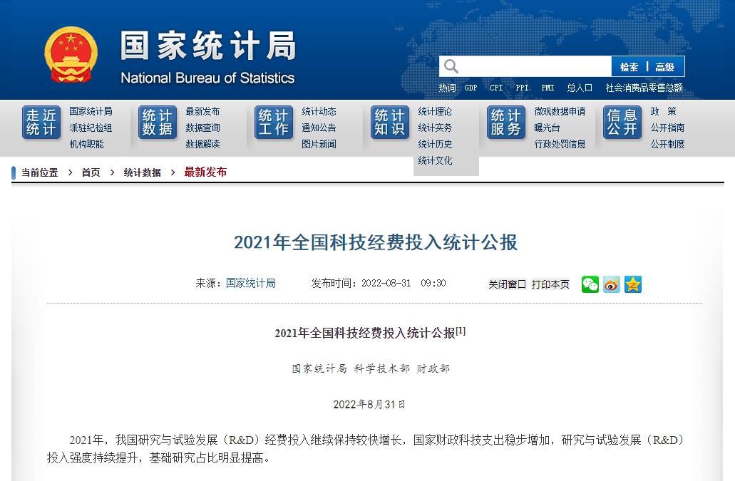 央视网消息:8月31日,国家统计局发布《2021年全国科技经费投入统计公报》。